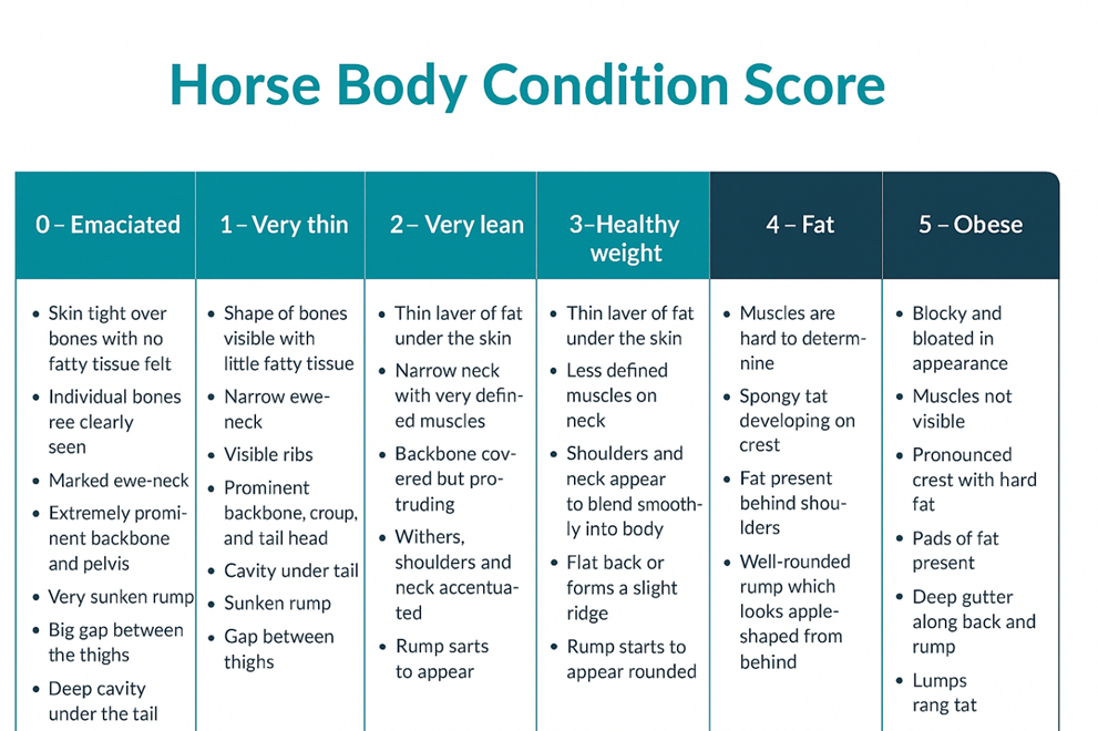 - Support veterinary care, as vets often use body scoring to assess risk factors for conditions like laminitis or metabolic disorders.